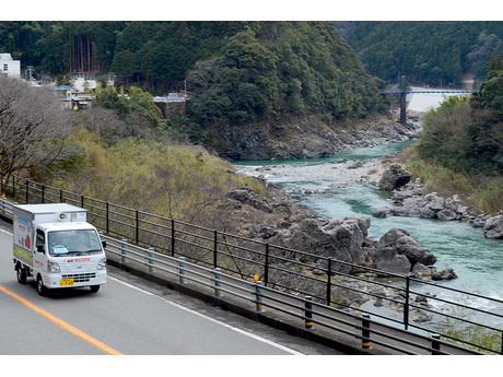 「ハッピーライナーミニ」を運転し、高知市内およびアクセスが困難な山村部や農村部へ必要な商品を届ける重要な役割を担います。